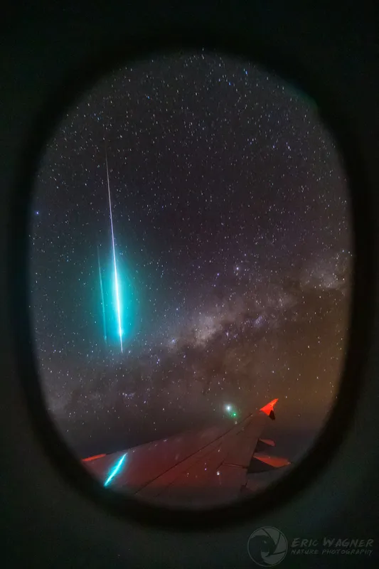 Gyönyörű, kékeszöld fényben izzó meteorról lőtt képet egy fotós, Eric Wagner. A férfi éppen a Szingapúrból Ausztráliába tartó járaton utazott, amikor észrevette a csodás égi jelenséget. A fotót a NASA a nap képének választotta.