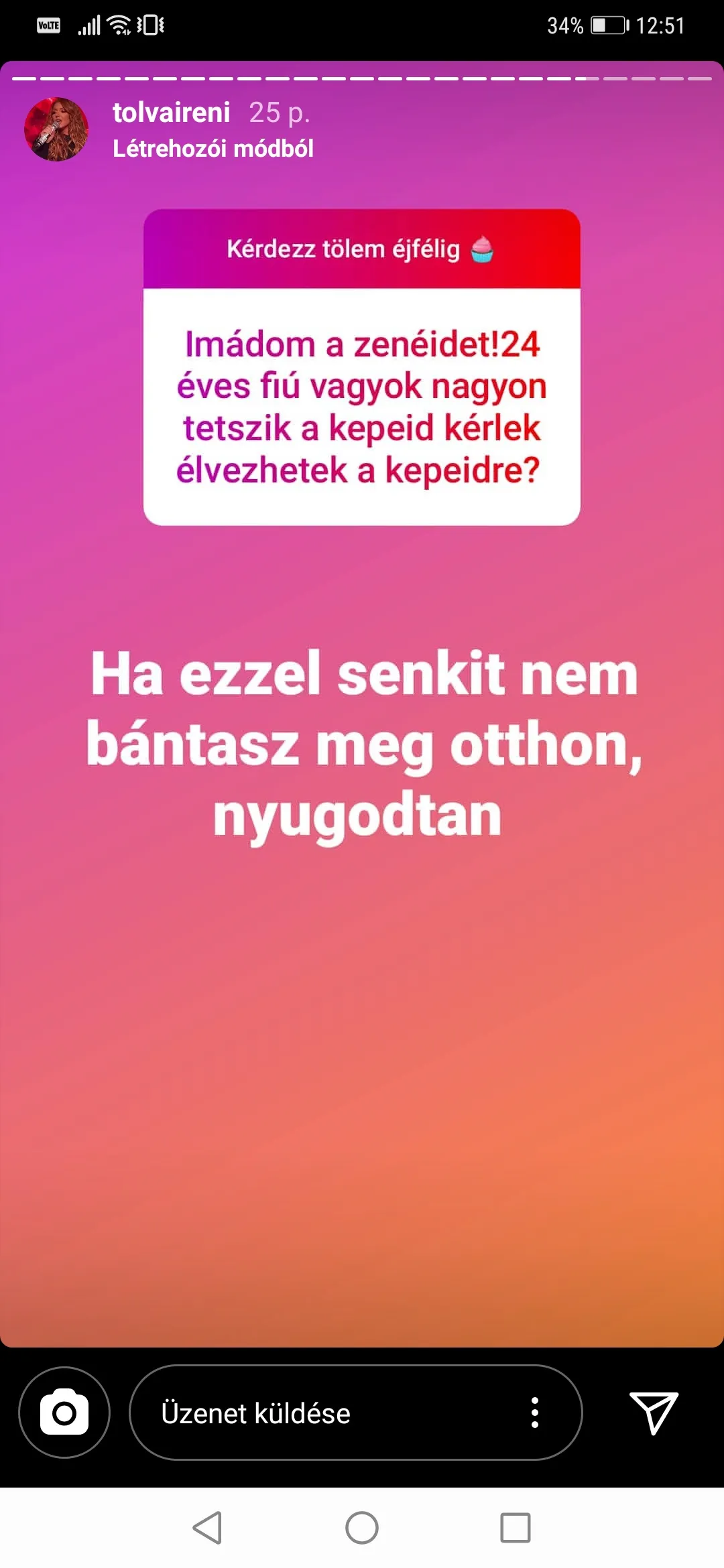 Jobban mondva, üzenetben, nyíltan az énekesnő Instagram-oldalán részletezi, mit szeretne csinálni Reni képei láttán.