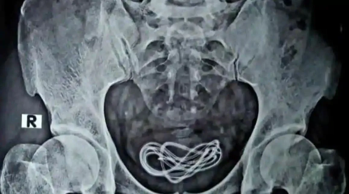 Endoszkópos beavatkozásra került sor, de a gyomor-bélrendszeri traktusban nem találtak semmit. Aztán egy röntgen kimutatta: az idegen test jóval lejjebb található. A húgyhólyagban.