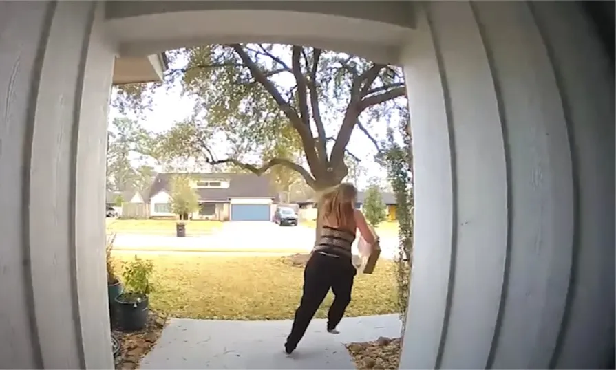 A csomagot egy texasi házhoz szállították ki, a futár a bejáratnál hagyta a küldeményt. Ezt vehette észre a felvételen látható nő, aki odaszaladt, felkapta és elvitte magával a dobozt. A tolvajt még sem az sem zavarta, hogy a nagy rohanás közepette kiesett a melle a felsőjéből.