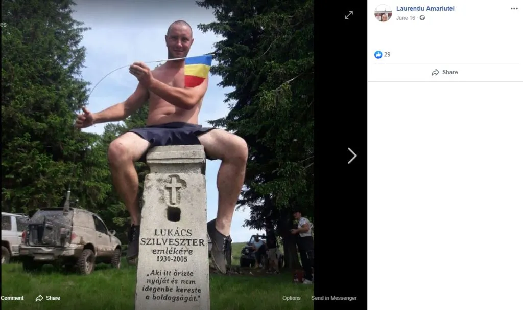 Nem utolsósorban pedig együtt dolgozik – villanyszerelőként – azzal a Laurentiu Amariutei-jal, aki június 6-án zászlót lengetve „meglovagolt” egy, az úzvölgyi temetőben elhelyezett keresztet.