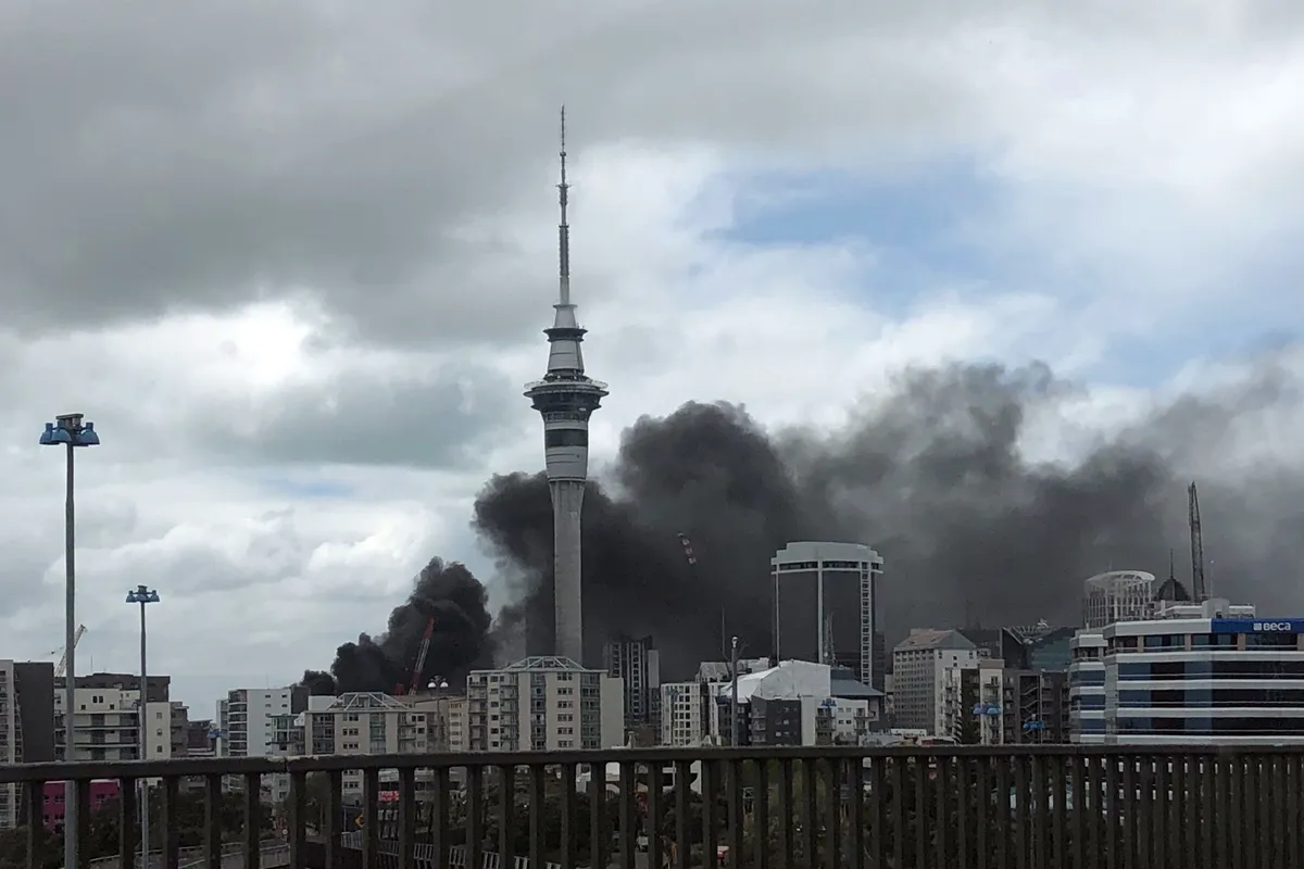 Phil Goff, a város polgármestere azt írta a Twitteren, hogy a tűz láthatóan tovaterjed, a tetőn embereket lehet látni.