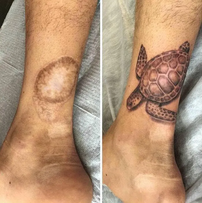 A csúnya foltból cuki teknősbékát varázsolt a tetoválóművész.