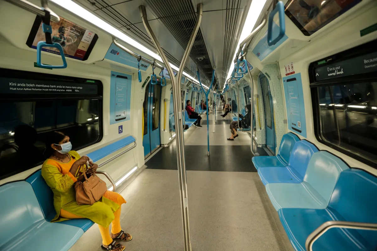 Utas egy Kuala Lumpur-i metrókocsiban a csúcsforgalom idején, 2020. március 18-án. Az új koronavírus járványa miatt a malajziai kormány két hétre részlegesen bezáratta az iskolákat, imahelyeket és a legtöbb üzletet, továbbá megtiltotta az állampolgárok külföldre utazását.
