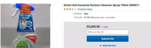Az eBay-en bukkant rá a Mirror azokra a hirdetésekre, amelyek nem kevesebb, mint több ezer fontért árulnak egyszerű, rendes esetben filléres tisztítószereket. A legdurvább licit egy Dettol fertőtlenítő kapcsán folyt, ott a végső ár 5600 font körül (2,2 millió forint) ért véget. A 750 milliliteres flakonra összesen 11 licit érkezett.