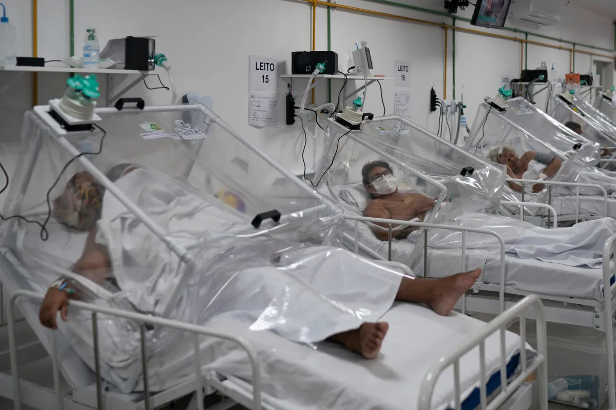 Speciális lélegeztető kapszulákban ápolnak koronavírussal fertőzött betegeket egy iskolában, melyet ideiglenesen 150 fő befogadására alkalmas kórházzá alakítottak át a brazíliai Manausban.
