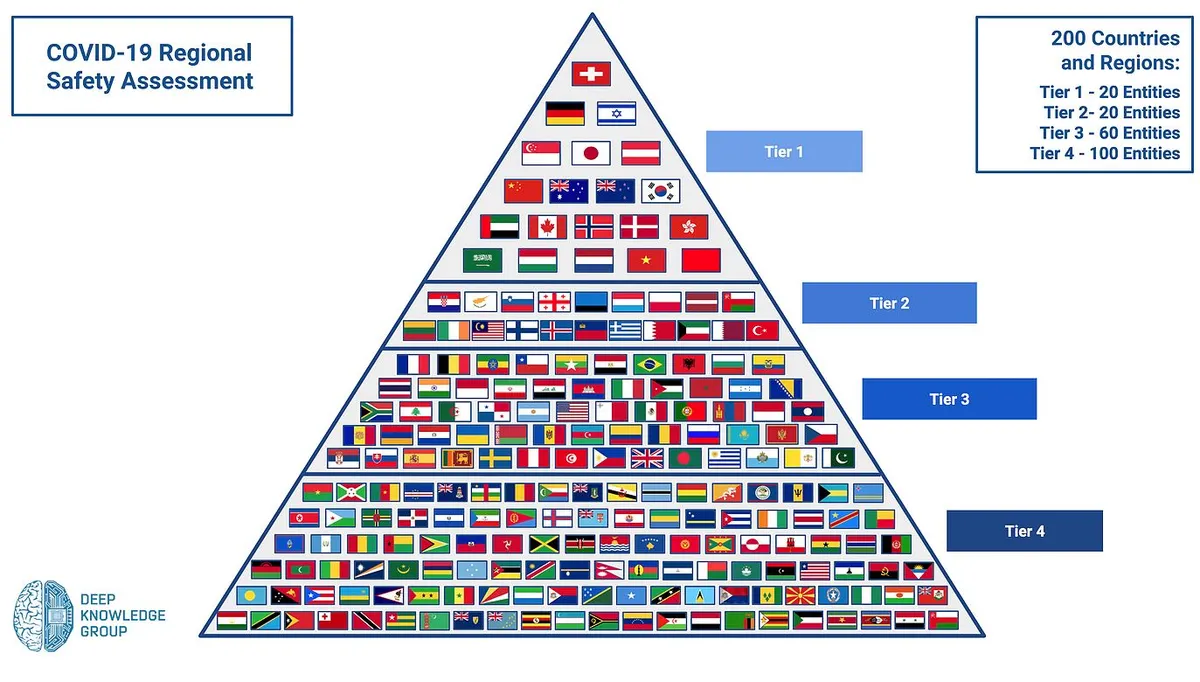 A tekintélyes Forbes magazin számolt be elsőként a vállalatok és nonprofit szervezetek konzorciumaként számon tartott Deep Knowledge Group nevű szervezet frissen közzétett tanulmányáról. A jelentést hónapról hónapra elkészítik, amiben azt vizsgálják, hogy éppen melyik ország a legbiztonságosabb a világjárvány szempontjából. A helyzet jelenleg úgy áll, hogy Svájc végzett a legelőkelőbb helyen, míg a dobogóra még Németország és Izrael fért fel. A 200 ország összehasonlításával készült tanulmányban Magyarország az első osztályban, az első 20 között landolt.