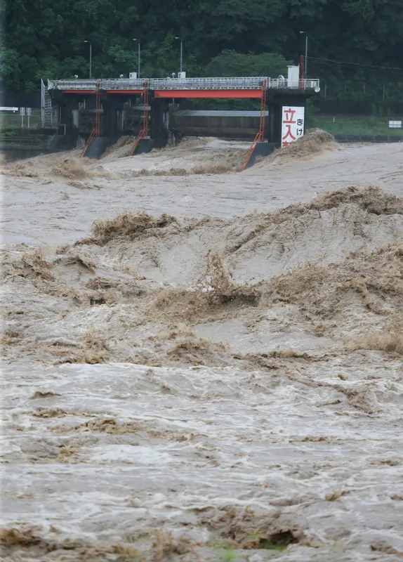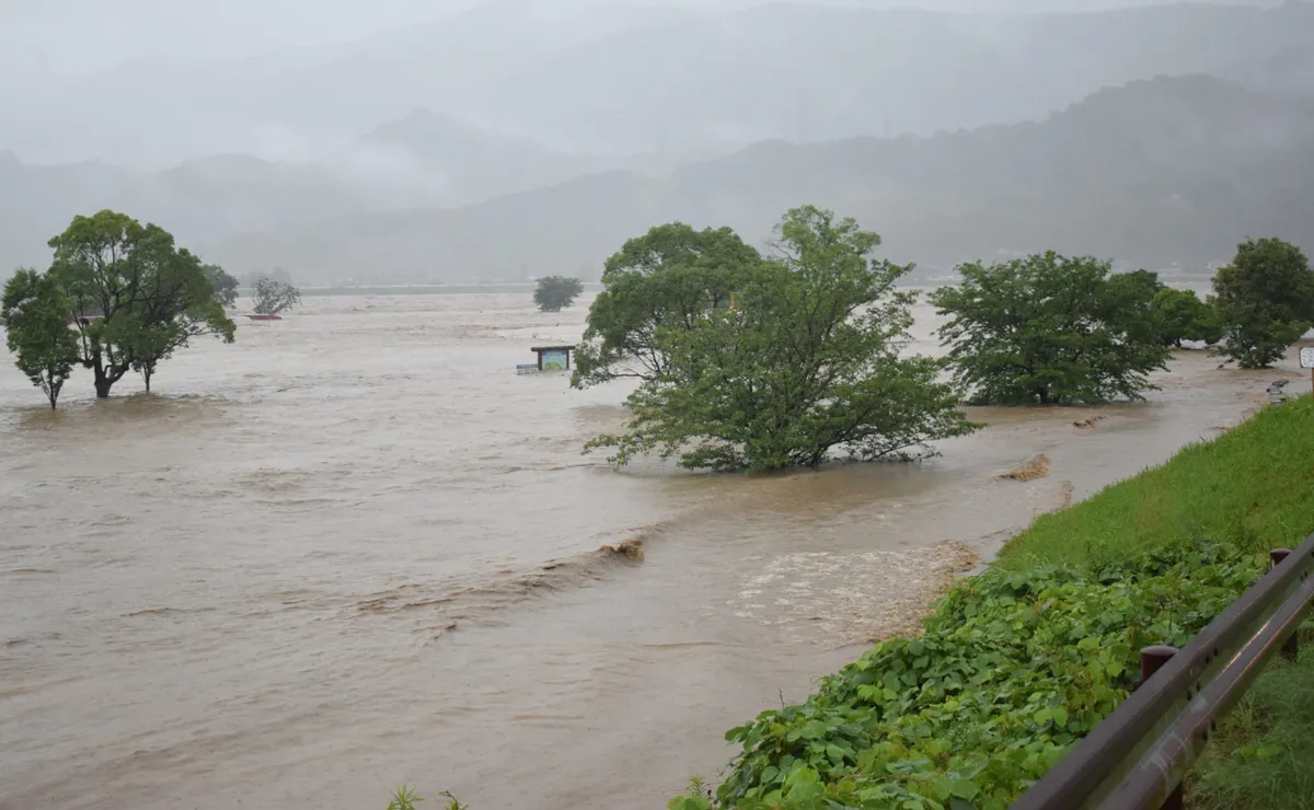 Az NHK televízió felvételein látni lehetett, amint a Kuma folyóból kiáradó iszapos víz nagy területeket borít el Hitojosi városban. Sok gépkocsi az ablakáig süllyedt el az árban.