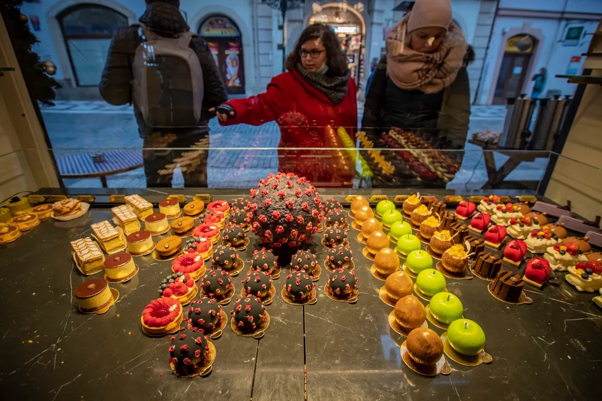 Mivel a mai naptól újra kinyithattak az eddig zárva tartó éttermek és kávézók, egy prágai cukrászda úgy döntött, koronavírushoz hasonlító süteményekkel rukkol elő.