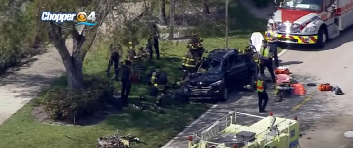 A Pembroke Pines-i tűzoltóság a CBS Miami-nak mondta el, hogy a kisgép röviddel a felszállás után zuhanni kezdett, és nem tudta elkerülni a lakóövezetet, ahol egy terepjáróra zuhant.