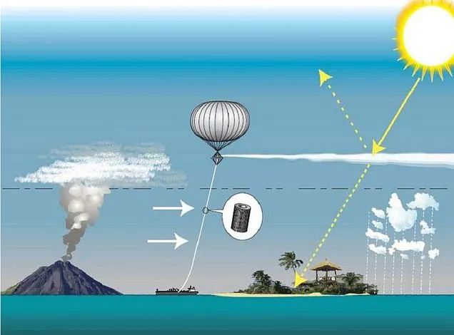 Sir David King, a Cambridge-i Egyetem vezető vegyészmérnöke annak a félelmének adott hangot, miszerint a levegőben szétszórt több millió tonnányi krétapor katasztrófát okozhat a globális időjárási rendszerekben, ami a bolygók vesztét is okozhatja.