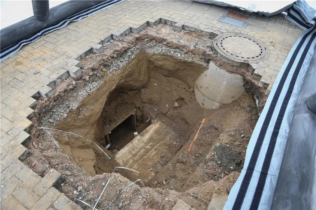 A hollywoodi filmeket időző járatra építőmunkások bukkantak rá a német Volksbank fiókjának parkolójában, ahol egy hosszanti vonalon körülbelül 30 centiméterrel megsüllyedt az aszfalt. A helyreállítással megbízott brigád először földalatti vízátfolyásra gyanakodott, ezért a süllyedés mentén kiásták földet, de elmosott talaj helyett végül egy fadeszkákkal alátámasztott, 8 méter hosszú és 1 méter magas járatot találtak. Beletelt néhány órába, de a melósok végül riasztották a hatóságokat.