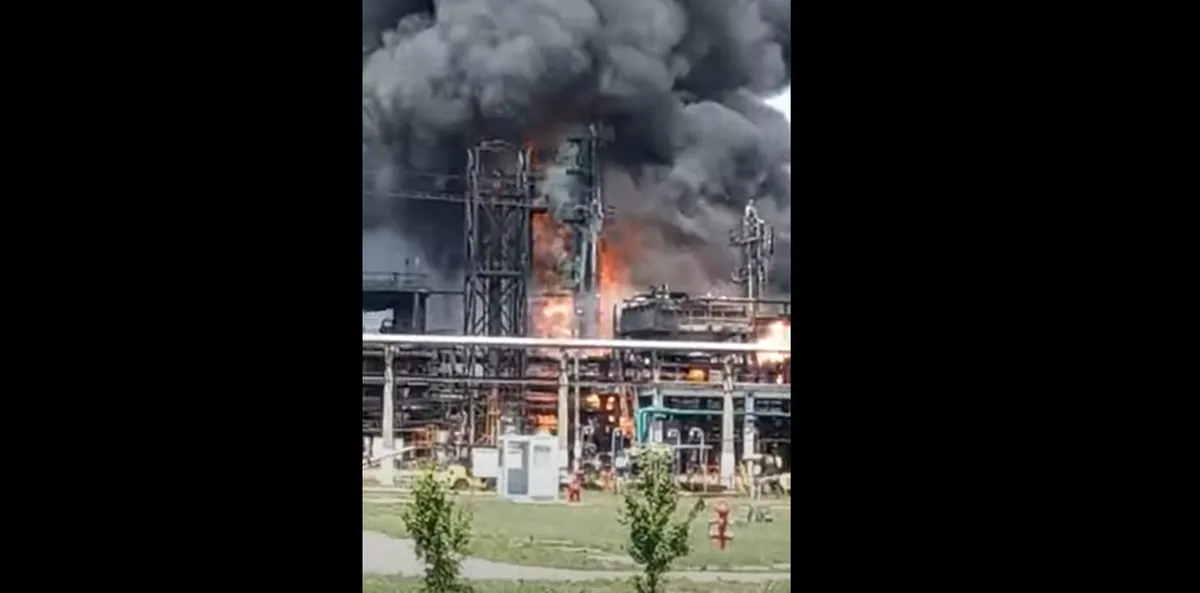 Az elsődleges információk szerint egy finomító-berendezés hibásodhatott meg, a gomolygó füst kilométerekről is látszik.
