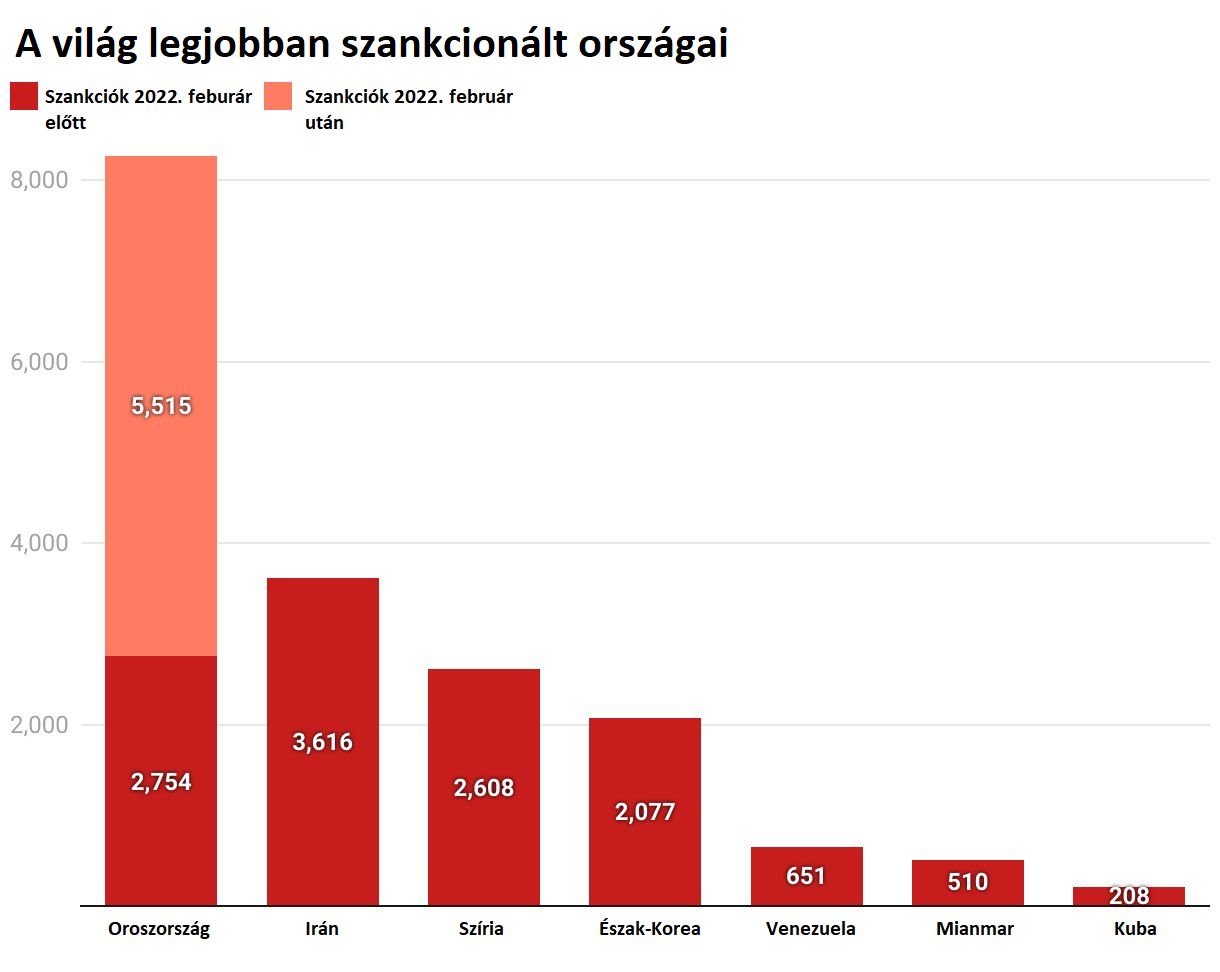 Az orosz-ukrán háború hatalmas átrendeződést hozott a nemzetközi közösség által leginkább „büntetett” országok listáján.