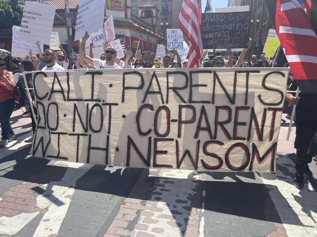 A genderideológia iskolai terjedése ellen tüntetők „hagyják békén a gyerekeinket” feliratú táblákkal, molinókkal vonultak fel, az eseményt a "Leave Our Kids Alone" nevű csoport szervezte, amely a CBS Los Angeles beszámolója szerint a gyerekek iskolai szexualizálása ellen lép fel. A szervezet azt is követeli, hogy az iskolák értesítsék a szülőket, ha a gyermekük nemével kapcsolatos zavarokat észlelnek.