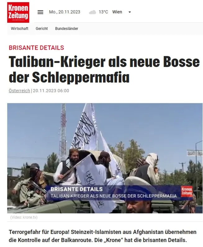 A legolvasottabb osztrák napilap és hírportál, a Kronen Zeitung vezető hírként számolt be arról, hogy sikerült beletekintenie abba a magyar titkosszolgálat által készített jelentésbe, amiben arra figyelmeztetnek, hogy Afganisztánból származó tálib harcosok vették át az irányítást a balkáni útvonal embercsempész-hálózatában.