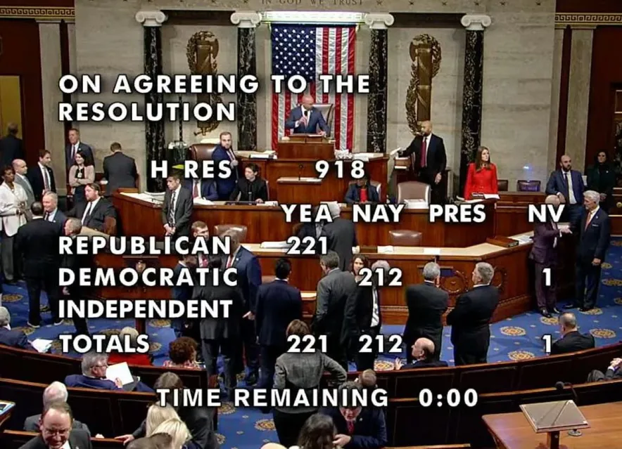 A republikánusok egységesen támogatták, a demokraták pedig egységesen elutasították az alkotmányos vádeljárás megindításáról szóló határozatot. A döntés lehetővé teszi, hogy a képviselőház kikényszerítse az idézéseket és bizonyítékokat gyűjtsön arról, hogy az elnök milyen mértékben élt vissza hatalmával, hogy a fia korrupciógyanús üzleteit segítse.