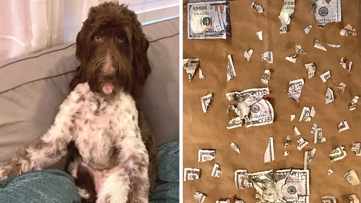 Carrie és Clayton Shaw, a hétéves kutya gazdái szó szerint sokkot kaptak, amikor meglátták, hogy készpénzdarabok lógnak ki a kedvencük szájából. Elmondásuk szerint mindösszesen harminc percre hagyták magára az állatot, amíg elmentek bevásárolni.