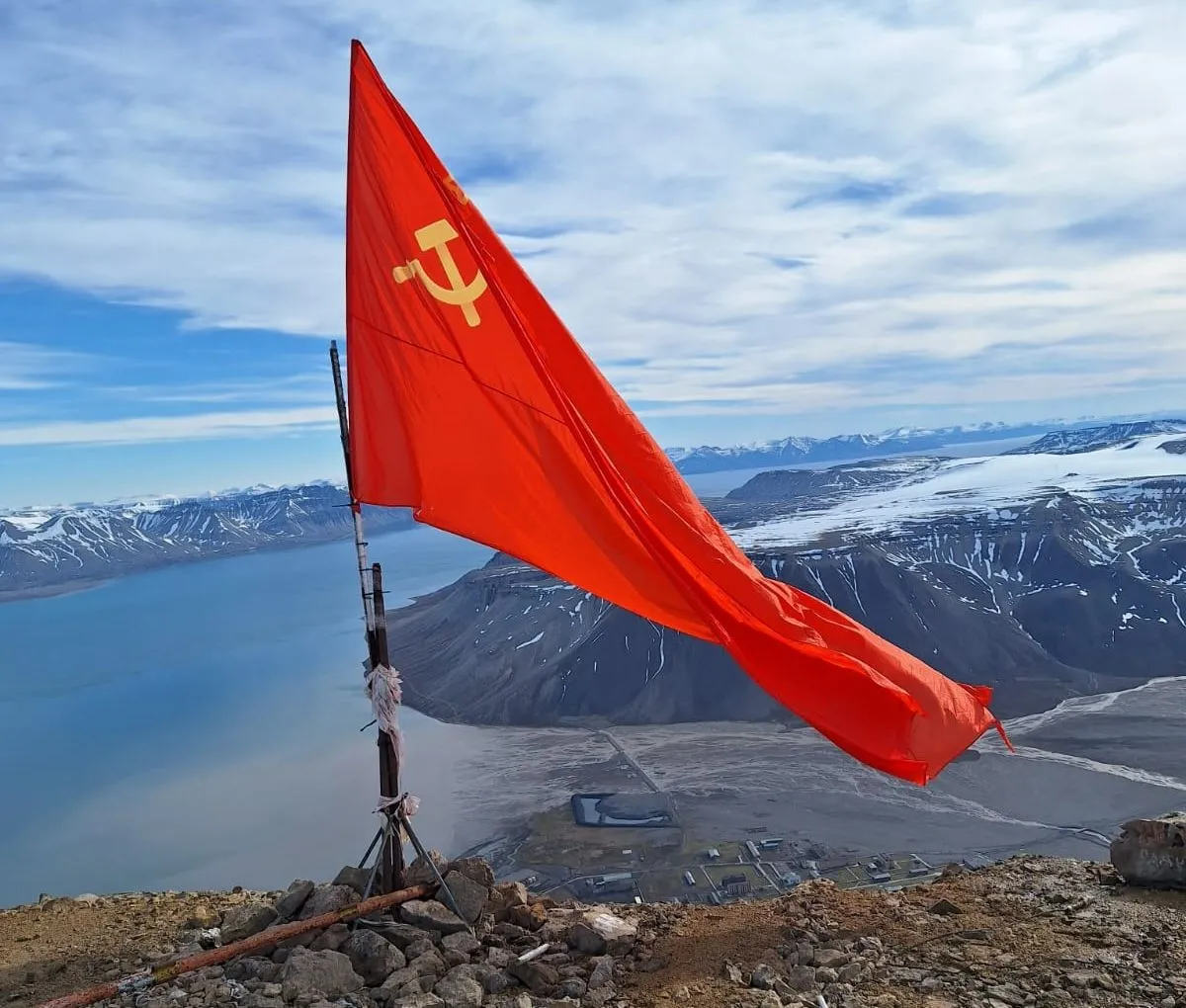 A zászló kitűzéséről először Ildar Neverov, az Arktikugel vezérigazgatója adott hírt a közösségi oldalán. A cégvezér az írta, hogy Spitzbergákon élő oroszokkal és turistákkal mászta meg a Pyramiden város melletti hegycsúcsot, ahol egy akkora szovjet lobogót helyeztek el, ami az egész környékről látszik. „A hagyomány újjáéledt, és élni fog!” – zárta gondolatait Neverov.