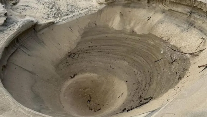 „Sosem láttam ilyet” - óriási, rejtélyes lyukat találtak a strandon