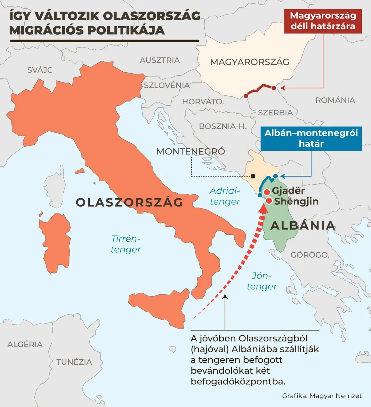 A tervek alapján a két központ évi 36 ezer migránst vállalna át Olaszországtól, és ide elsősorban azokat a biztonságos országból származó férfi bevándorlókat szállítanák, akiket az olasz haditengerészet fog el olasz felségvizeken. Az olasz hajók ezeket a férfiakat már nem Olaszországba, hanem egyenesen az albán központokba vinné. A nőket, gyermekeket és a valamilyen fogyatékossággal élőket viszont továbbra is az olasz partokhoz szállítanák.