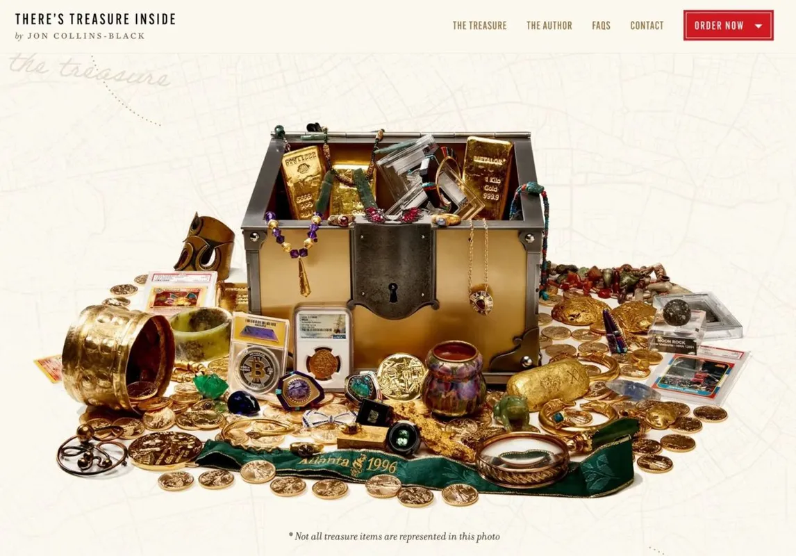 A kiroptovalutás befektetéseiből meggazdagodott Collins az elmúlt éveket azzal töltötte, hogy értékes aranytárgyakat és műkincseket gyűjtött össze a kincsvadászathoz. Elmondása szerint összesen öt ládát rejtett el, melyekbe tárgyak olyan széles választéka került, amik mindenki kíváncsiságát felkelthetik. Többek közt vannak bennük aranyérmék, hajóroncsokból származó ékszerek és aranyrögök, egy ie 4. századból származó arany görög babér, értékes gyűjtői kártyák, egykor Jacqueline Onassis tulajdonában lévő gyémántok és zafír brossok, fizikai adathordozókon lévő bitcoinok is.