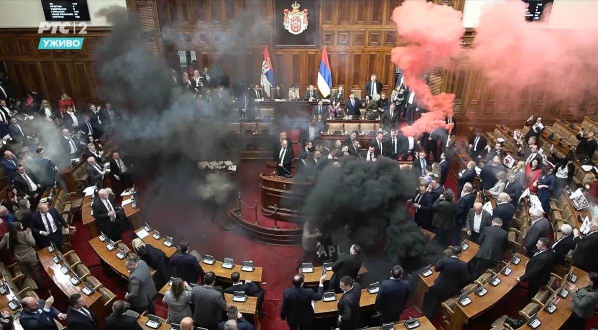 Káoszba fulladt a szerb parlament keddi plenáris ülése, miután ellenzéki képviselők egy csoportja füstgránátokat robbantott fel az ülésteremben - jelentett a helyi sajtó.
