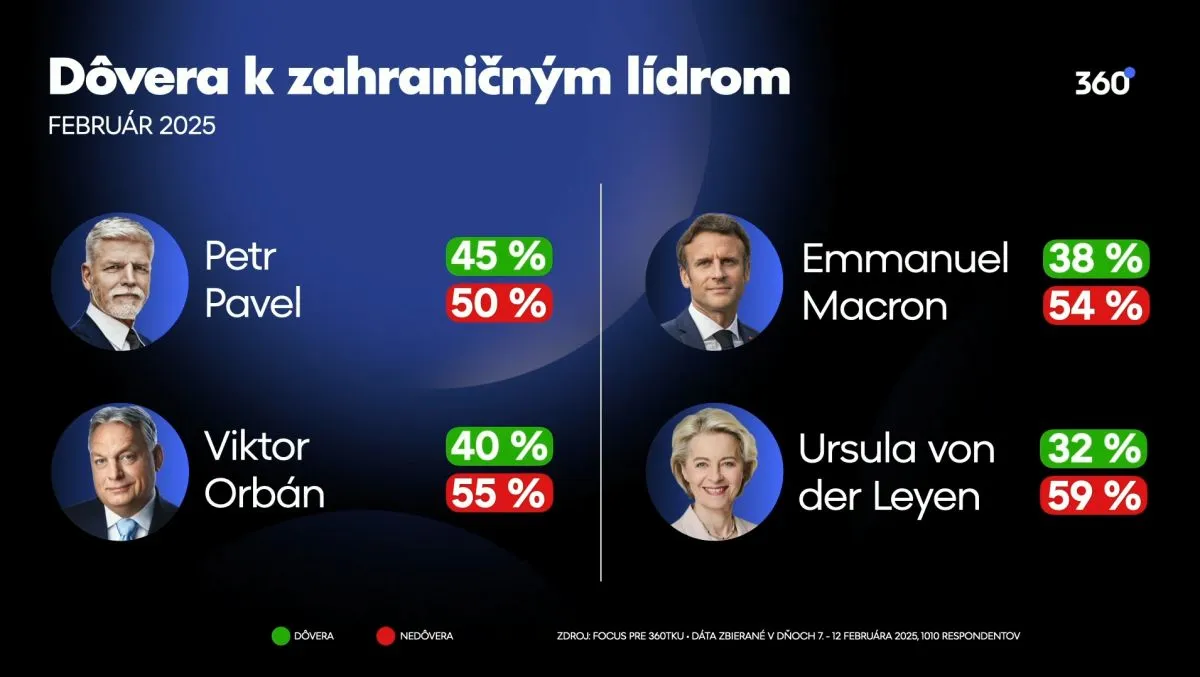 A szlovák Focus ügynökség nemrég közzétett felmérése szerint a szlovákok viszonylag kevés bizalmat szavaznak a külföldi politikai vezetőknek, de a régióhoz közeli országok vezetői kiemelkednek a mezőnyből. Petr Pavel cseh államfő 45 százalékos támogatottsággal az első helyen végzett, míg a magyar miniszterelnök, Orbán Viktor a második helyet szerezte meg a rangsorban, negyvenszázalékos támogatottsággal.