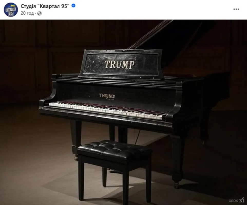 Miután kudarcba fulladt az ukrán és az amerikai elnök találkozója Washingtonban, a Volodimir Zelenszkij által alapított "Kvartal 95" nevű ukrán színházi társulat egy Trump feliratú fekete zongoráról készült képet osztott meg a közösségi médiafelületein. Az ukrán sajtó értékelése szerint a fotóval egyértelműen Zelenszkij híres-hírhedt "pénisz-zongorista" alakítását idézték föl, miközben valami olyasmit üzentek vele Trumpnak, hogy "Zelenszkij a péniszével fog elverni".