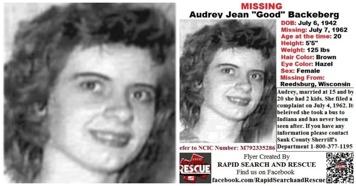 Audrey Backeberg 20 éves korában, 1962. július 7-én tűnt el a Wisconsin állam középső részén található Reedsburg kisvárosból. Korabeli sajtóbeszámolók szerint a nő elment otthonról, hogy felvegye a fizetését a gyapjúgyárból, ahol dolgozott, majd stoppal elvitette magát az állam fővárosába, Medisonba, ahol egy buszpályaudvar közelében látták őt utoljára. Egyes feltételezések szerint a nő a 480 kilométerre lévő Indianapolisba utazott, de ezt sosem tudták bizonyítani. A felkutatására több nagyszabású nyomozást is indítottak, de a hatóságok egyetlen alkalommal sem akadtak a nyomára, így az eset a kihűlt ügyek osztályára került. Az ügyet idén januárban vették elő ismét, miután újabb bizonyítékok láttak napvilágot.