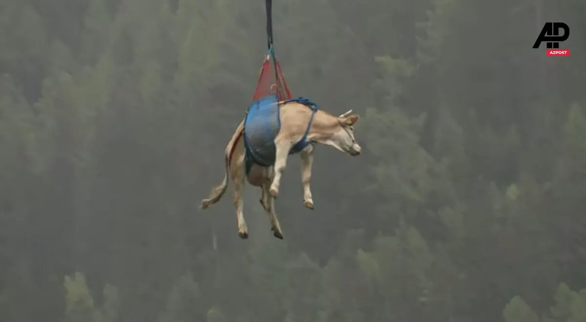 Helikopterrel mentettek meg egy tehenet Svájcban