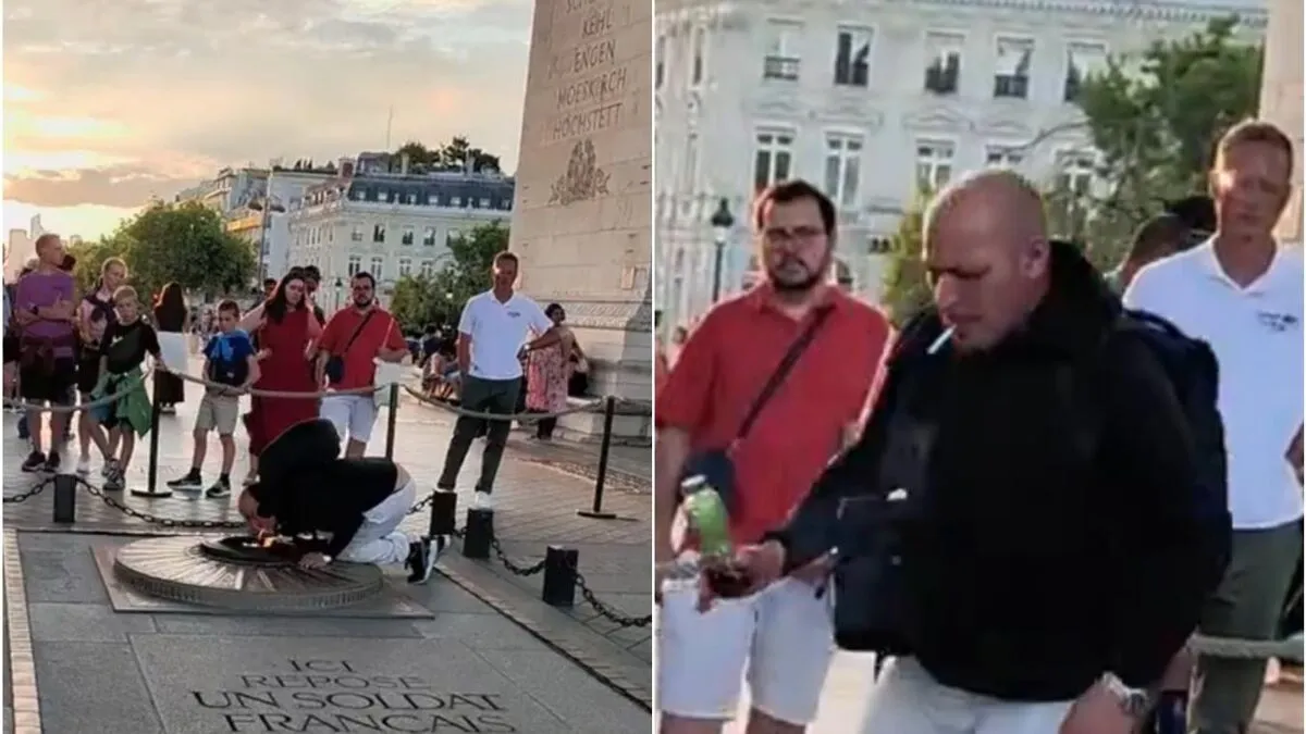 Az incidens augusztus 4-én kora este, a párizsi diadalív alatt található Soldat inconnu (Ismeretlen Katona) sírjánál történt. Egy közösségi médiás felvétel szerint a 47 éves marokkói migráns hezitálás nélkül vágott át az emlékmű előtt álló turistákon, átlépte a díszkerítést, az örökláng fölé hajolt, meggyújtotta a cigarettáját, majd távozott a helyszínről. A mutatványát döbbenten nézték végig a jelenlévők, de senki sem avatkozott közbe.