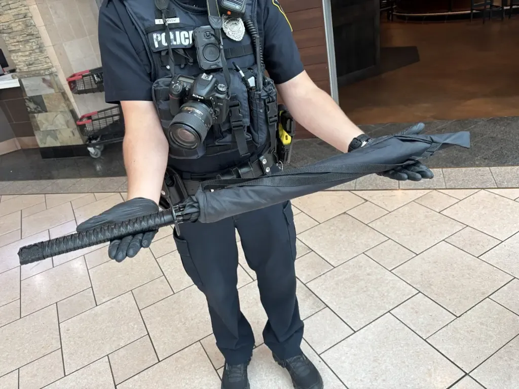 A biztonsági kamerák felvételeinek átvizsgálása során a rendőröknek sikerült beazonosítaniuk a keresett személyt, akit egy mozgólépcsőn kapcsoltak le. A férfi lefegyverzése után az egyenruhások meglepve tapasztalták, hogy a keresett „gépfegyver” valójában nem volt más, mint egy fekete esernyő. A tárgy különlegessége abban rejlett, hogy a markolata egy japán szamurájkard nyelét formázta, és így első pillantásra valóban katonai jellegű fegyver benyomását kelthette.