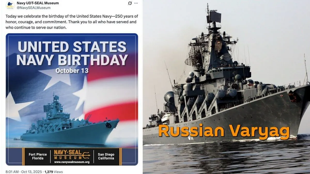 Az első hibás képek az amerikai haditengerészeti múzeum közösségi oldalain jelentek meg. Az intézmény több ünnepi hangvételű bejegyzést tett közzé, melyekben gratuláltak a haditengerészet 250 éves fennállásához. A posztok szövege önmagában semleges és ünnepi hangvételű volt, azonban a hozzá tartozó képeken egy, a szakértők szerint orosz gyártmányú rakétacirkáló, a „Varyag” volt látható. A fotókat több szaklap is azonosította, és hamar világossá vált, hogy nem egy amerikai hadihajót ábrázol.