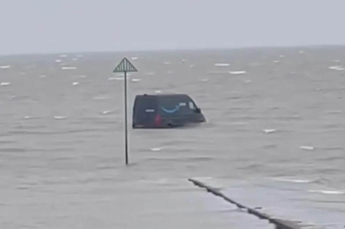 Egy óvatlan Amazon-futár kénytelen volt a tengerben hagynia a furgonját, miután a GPS utasításait követve egy olyan útra hajtott Angliában, amit teljesen elöntött a tenger a dagály érkezésével - jelentette a New York Post napilap online kiadása.
