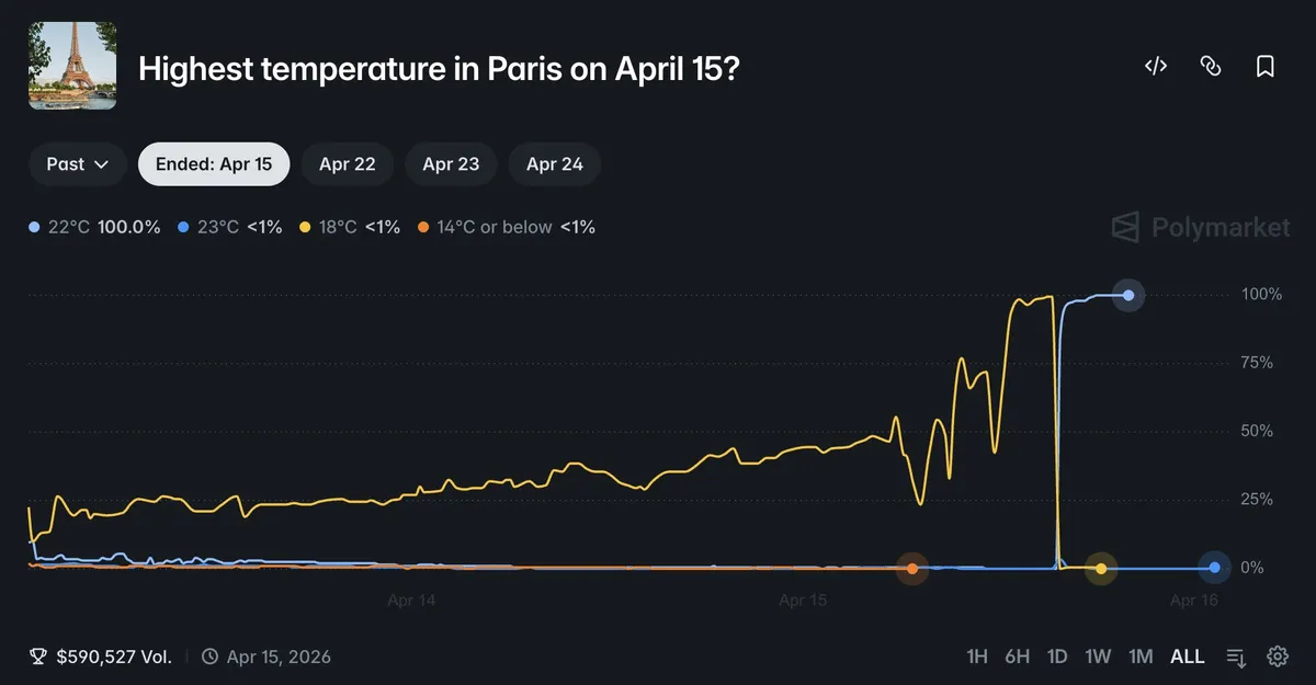 A mostani esetben éppen ez utóbbi, egy időjáráshoz kötött fogadás került a figyelem középpontjába. Egy felhasználó ugyanis arra tett fel jelentősebb összeget, hogy bizonyos áprilisi napokon Párizsban a napi csúcshőmérséklet meghaladja a 22 Celsius-fokot. Normál körülmények között ennek igen kicsi az esélye, különösen több egymástól független napon. Ennek ellenére a jelenség kétszer is bekövetkezett – ráadásul olyan körülmények között, amelyek sokak szerint nehezen magyarázhatók puszta véletlennel.
