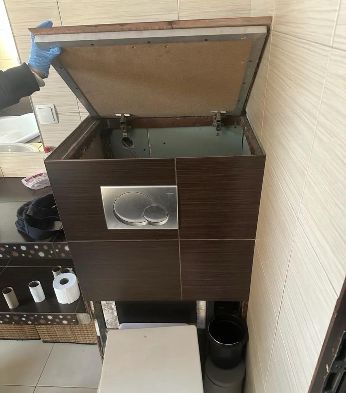A rendőrök elsőre semmi különöset sem találtak a lakásban. A helyiségek rendezettnek tűntek, és nem volt nyoma annak, hogy bárki bujkálna. A fordulat akkor következett be, amikor a fürdőszobába értek, ahol egy apró, de annál árulkodóbb részletre bukkantak: a vécé mögötti burkolatból kilógott egy láb. Mint később kiderült, a végtag a körzött személyhez tartozott, aki a szűk hely ellenére megpróbált teljesen elrejtőzni a falba épített tartályba.