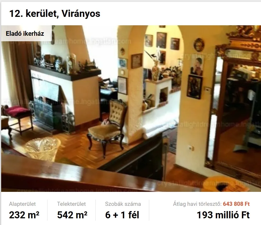 Döntése június közepén lett végleges, ekkor került fel a hirdetés az egyik ingatlanportálra. A XII. kerületben található ikerházat, amelyben 6 szoba, 3 erkély, szauna és kandalló is található eredetileg 195 millió forintért árulták, az özvegy terve pedig az volt, hogy ősszel kiköltözik és a gyerekeivel kezd úgy életet.