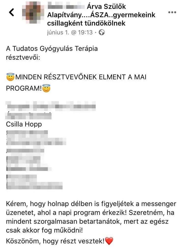 Lapunk megtudta, Csilla egy online csoportterápiára jár, ahol olyan szülőkkel együtt gyógyulhat, akiknek hasonló tragédiát kellett átélniük. Az Árva Szülők Alapítványa úgy próbál segíteni, hogy lehetőséget ad, hogy a résztvevők megismerjék egymás történetét, és rájöjjenek arra, hogy nem ők a hibásak a gyermekük haláláért. Egy biztos, a gyógyulás hosszú időt vesz majd igénybe, de ezekben a nehéz időkben egymásra támaszkodhatnak a szülők.