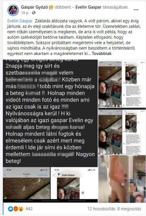 Betört autóablakok, mocskolódó üzenetek, meztelen képek, halálos fenyegetések... – Gáspár Evelin és exe szakítása nem éppen hétköznapira sikeredett. Reméljük, a lelki sebeken túl végül senkinek nem esik majd baja. A Borsnak megszólalt mindkét fél.
