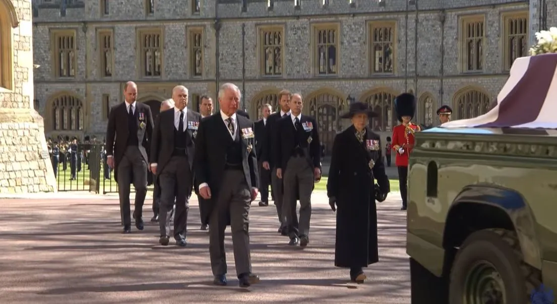 Mindössze 8 perces a menet, amely során Fülöp herceg koporsóját átviszik a kápolnába. Ez idő alatt Vilmos herceg mellett lépdelt Harry herceg. Egymásra sem pillantottak.