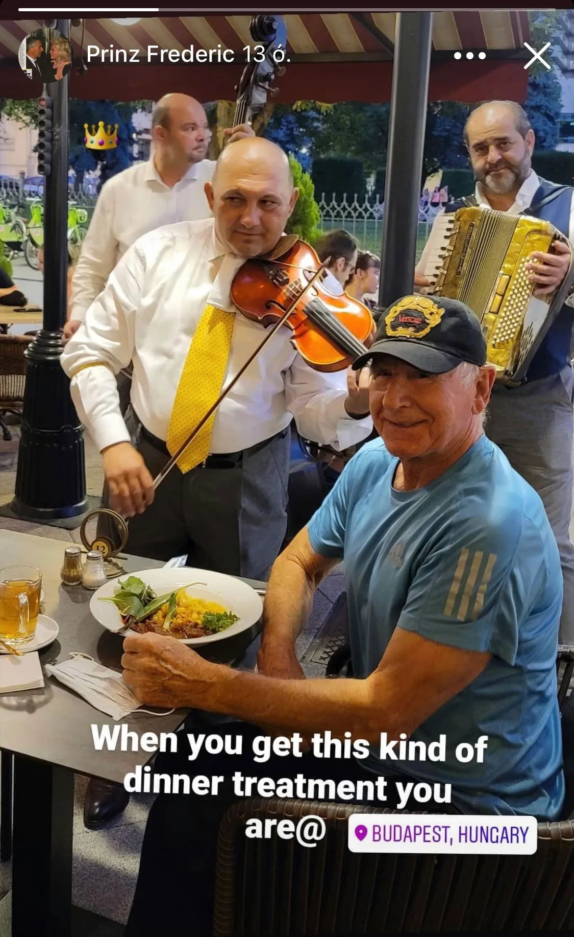 Anhalt herceg azért kihasználta a Magyarországon töltött időt. Többször látták a Vigadó téren császkálni, ahol még egy étterembe is beült. Ez utóbbit egyébként maga Anhalt tette közhírré a Facebook-oldalán. Boldogan számolt be róla, hogy kellemes muzsika kíséretében fogyaszthatta el a vacsoráját.