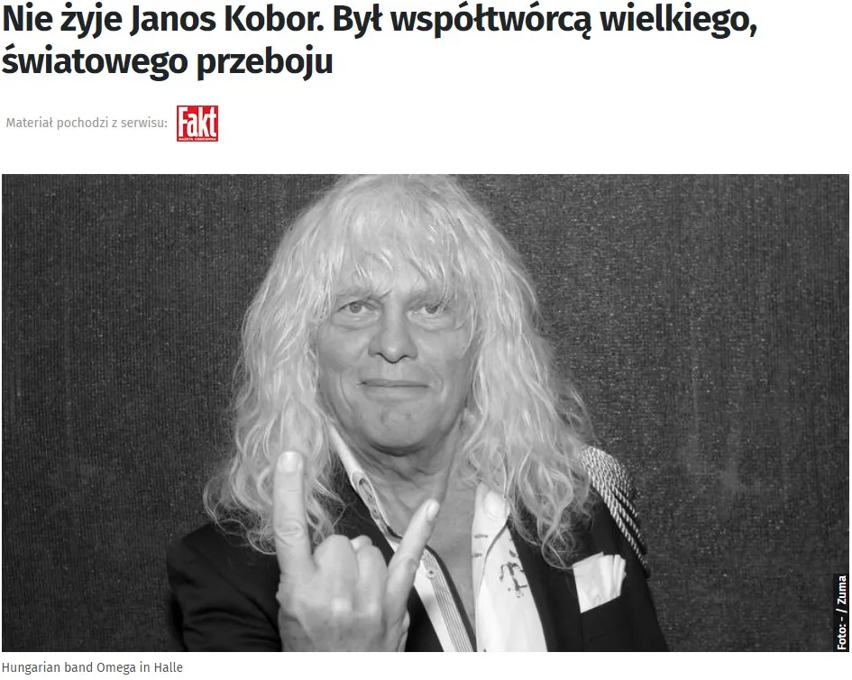 És természetesen a szomorú hírt Lengyelországban is több hírportál lehozta. Az Omega a lengyeleknél is óriási népszerűségnek örvendett a a 70-es évek óta. Az együttes több nagy sikerű koncertet is adott ott.