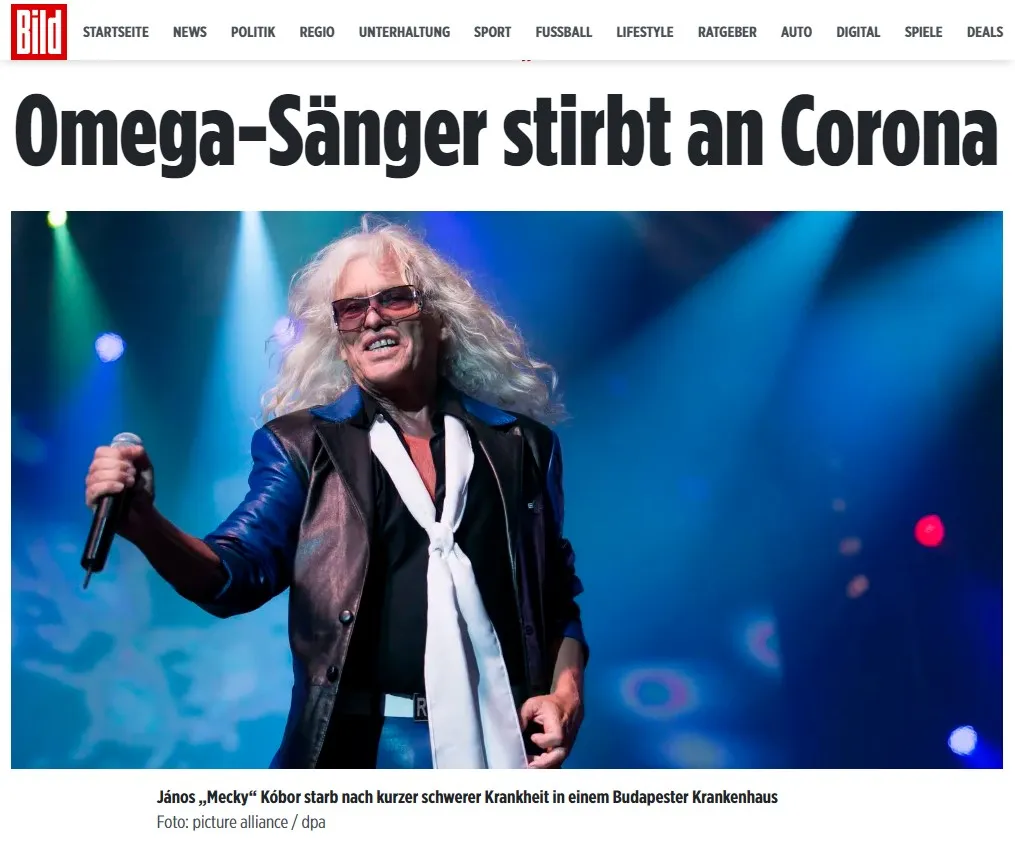 Németország legolvasottabb napilapja, a Bild online kiadása vezető anyagban számol be a 78 éves korában elhunyt rocklegenda, Kóbor János haláláról. A lap megemlíti, hogy az énekes koronavírus következtében hunyt el egy budapesti kórházban. A német lap egy rövid életrajzzal is szolgál, amelyben többek közt arról is megemlékeznek, hogy Kóbor „Mecky” János 1962-ben alapította az Omegát, amely egész Európában komoly sikereket ért el, és 1990-ig 13 albumot jelentettek meg.
