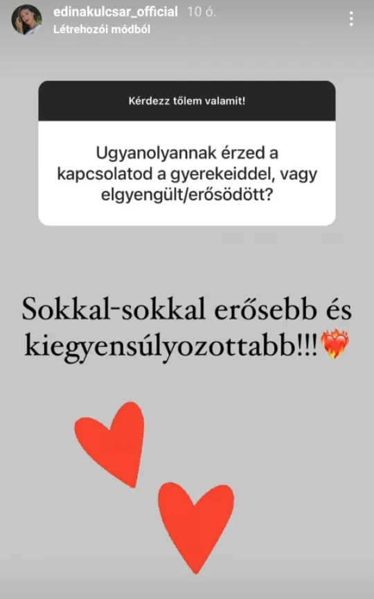 Kulcsár Edina igencsak viharos időszakon van túl, amióta bejelentette, hogy nem tudta megmenteni a házasságát Csutival. Ez persze a gyerekeivel való kapcsolatára is hatással volt.