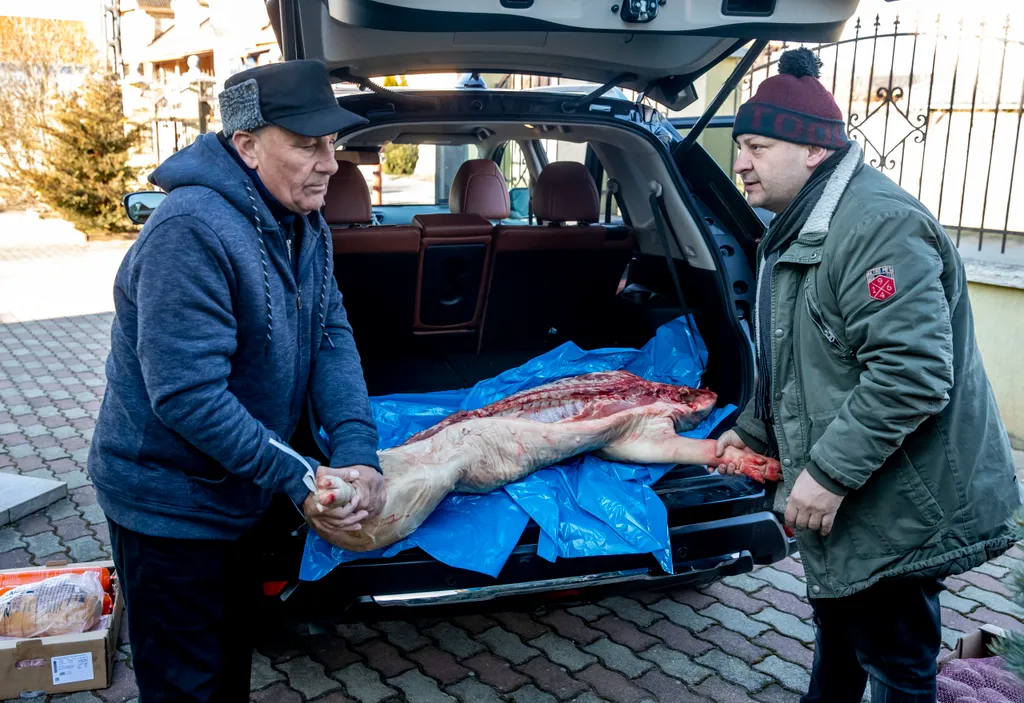 "Édesapámmal a háború kitörése óta azon tanakodunk, mit tehetnénk a menekültekért. Eleinte naponta többször is hívtuk az adományvonalat, de éreztük, hogy a pénzbeli segítség itt már kevés. Mindketten nagyon családcentrikus emberek vagyunk és szó szerint meghasadt a szívünk, amikor menekülő gyermekeket láttunk a tévében. Végül úgy döntöttünk, hogy hozzányúlunk a készleteinkhez, amiket az országjáráshoz vásároltunk és egy jelentős részüket elvisszük az egyik karitatív szervezet gyűjtőpontjára az ukrán határhoz"- mesélte Zsolti gazda, aki megmutatta azt a disznót is, amit hajnalban vágtak le azért, hogy átadják a rászorulóknak.