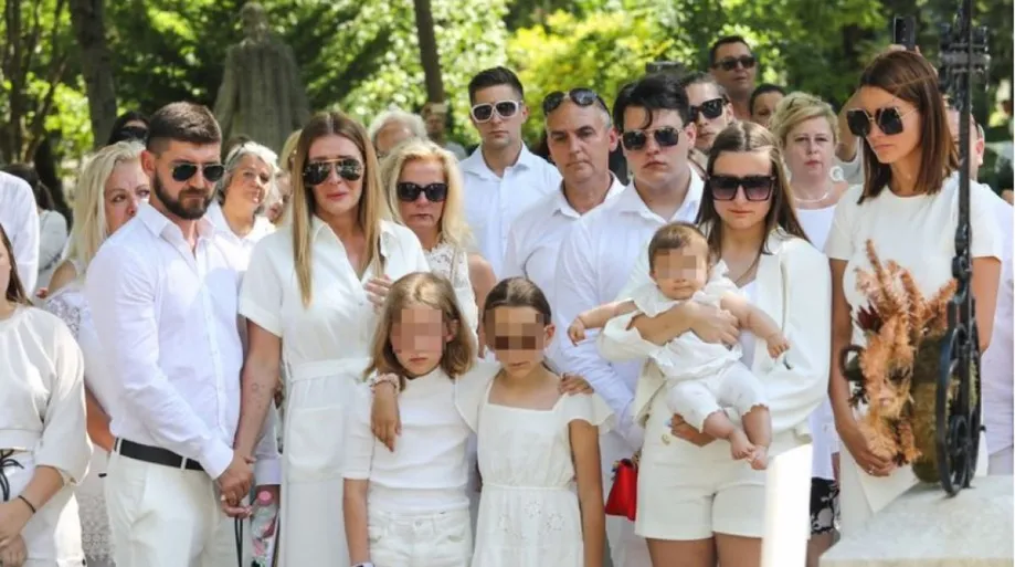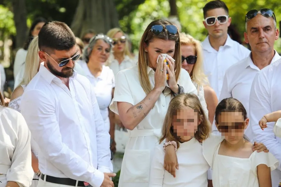 Az influenszer a szertartás végén, nagyobbik gyermeke apjának sírjánál állva omlott össze, nem tudta visszatartani a könnyeit.