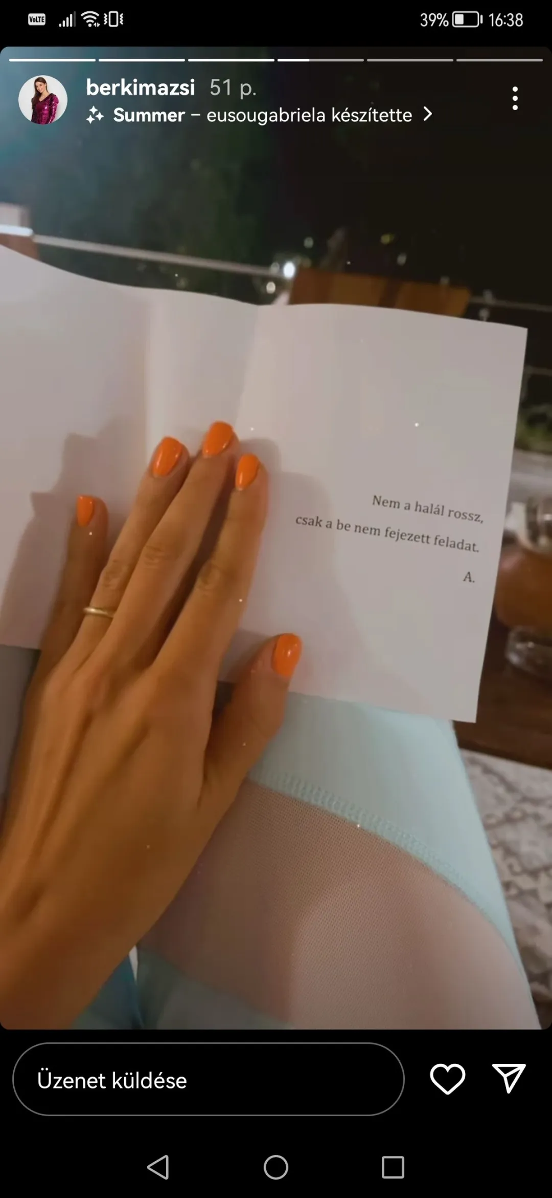 Tegnap este egy megindító idézetet tett közzé az interneten. "Nem a halál rossz, csak a be nem fejezett feladat "