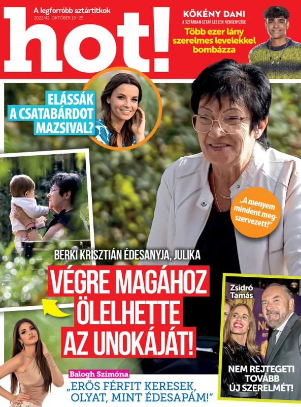 Julika az elmúlt időszakban azt is sérelmezte, hogy nem láthatja a legkisebb unokáját. A kívülállók számára a mostanra kialakult helyzet kétségbeejtőnek tűnhet, azonban a hot! magazin egy szemfüles olvasója a napokban lencsevégre kapta Julikát a kisbabával a Duna-parton. Mint írják, az asszony a kisunokáját tologatta boldogan a babakocsiban, ám a hölgykoszorú további tagjait nem ismerte fel. Természetesen a hot! magazin megkereste Júlia asszonyt, aki megerősítette a hírt.