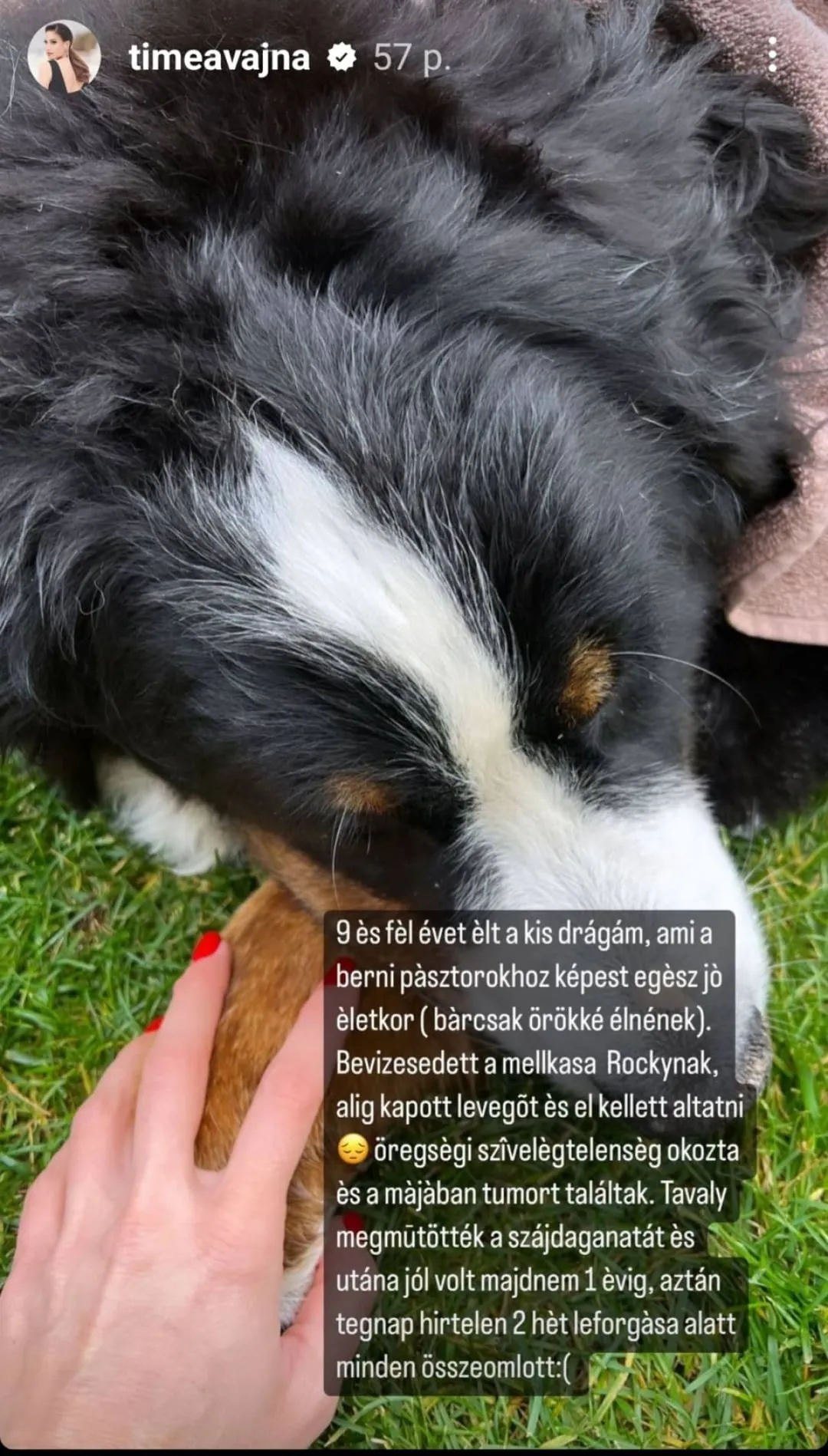 - írta szomorúan az Instagramon Timi, aki több képet is megosztott a házi kedvencről.